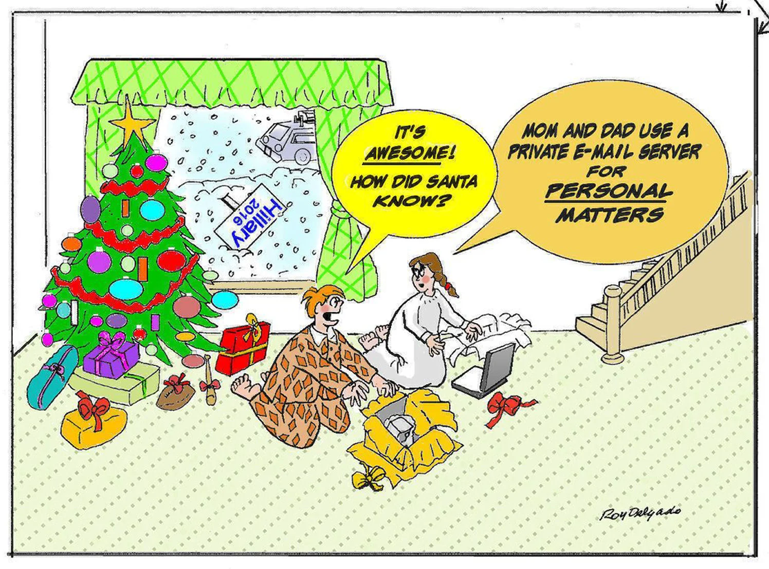 So here goes. The 2016 Resch Strategies Christmas card cartoons, brought to you by Hillary Clinton, who while conducting diplomacy on behalf of our great nation was working weekends on the Geek Squad at the Chappaqua Best Buy, and @realDonaldTrump, our Commander and Tweet-elect.